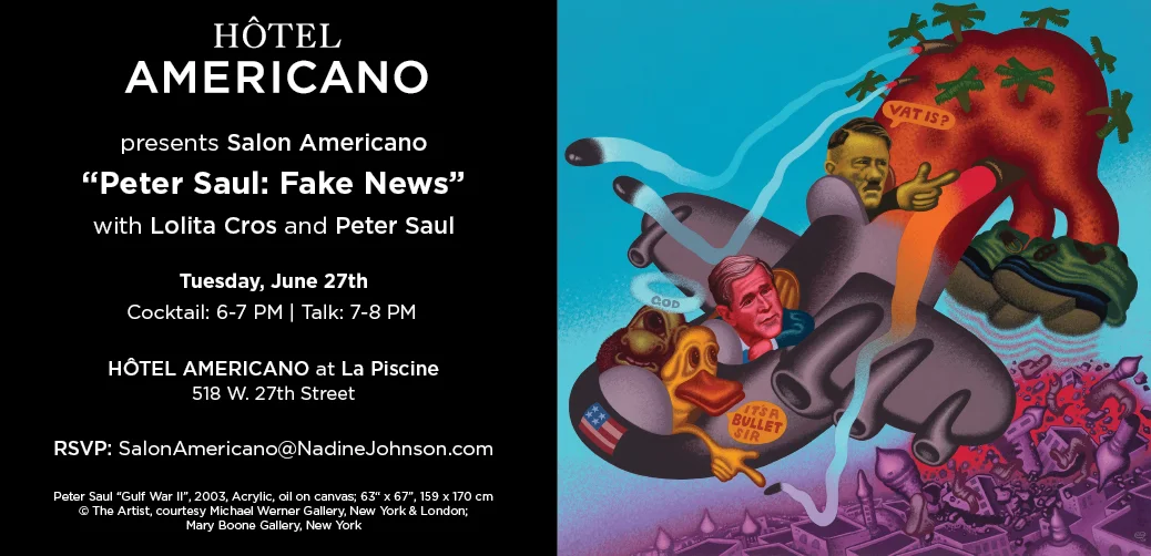 Peter Saul (b. 1934) is an American painter. Often considered one of the fathers of Pop Art, he is known for his distinctively colorful and cartoonish paintings which satirize American culture. Since his first solo exhibition, in Chicago in 1961, Peter Saul has exhibited his work throughout the United States and internationally. His works are found in numerous museum collections worldwide, including the Metropolitan Museum of Art, New York; Museum of Modern Art, New York; Whitney Museum of American Art, New York; Art Institute of Chicago; Carnegie Museum, Pittsburgh; Centre Pompidou, Paris; Los Angeles County Museum of Art; Moderna Museet, Stockholm; Museum Ludwig, Cologne; and Stedelijk Museum, Amsterdam. Peter Saul lives and works in New York.