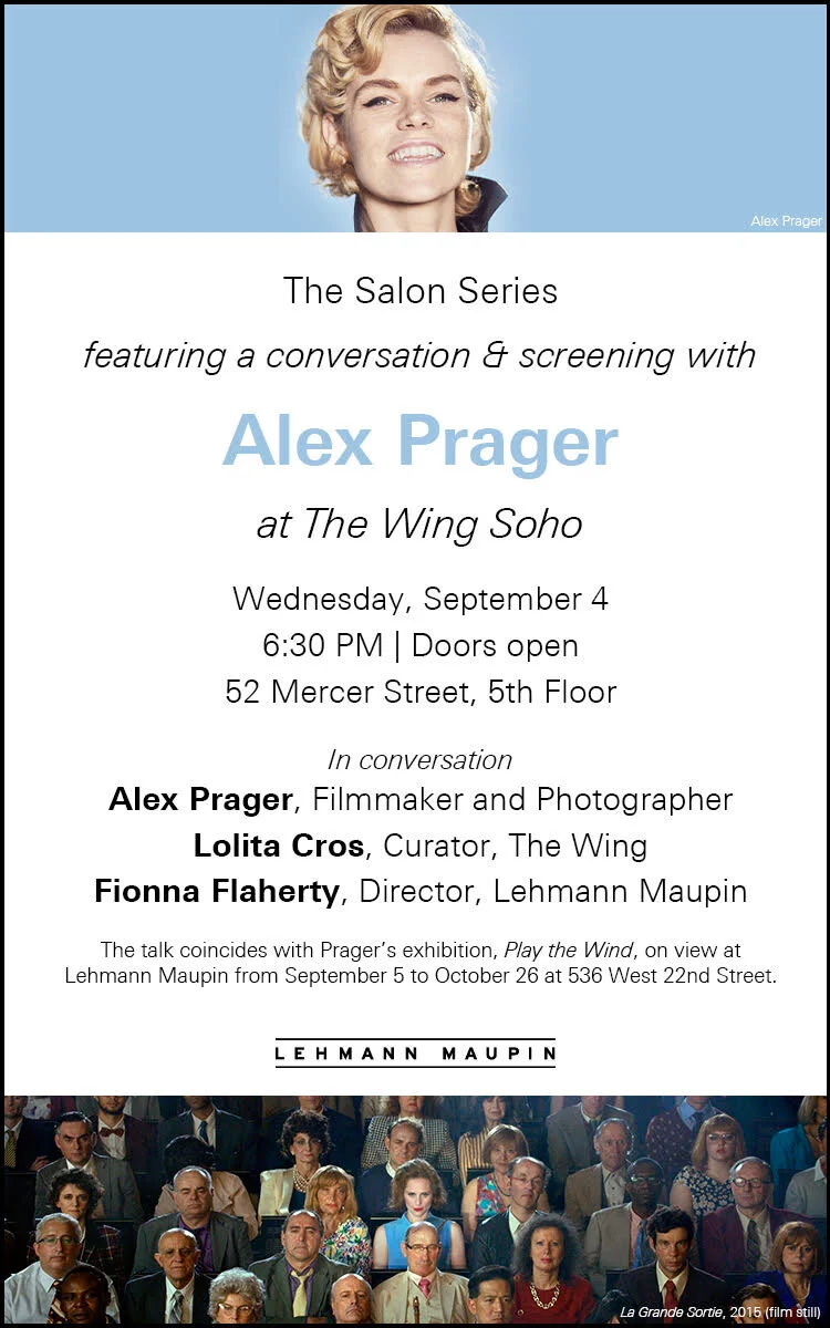 Lolita Cros recently participated in a conversation with Salon artist Alex Prager, alongside Lehmann Maupin Director Fionna Flaherty, previewing Prager’s new body of work, which includes a short film. Together, they discussed pushing boundaries, forging new territory, and the reality of being a working artist in the 21st century international art world.