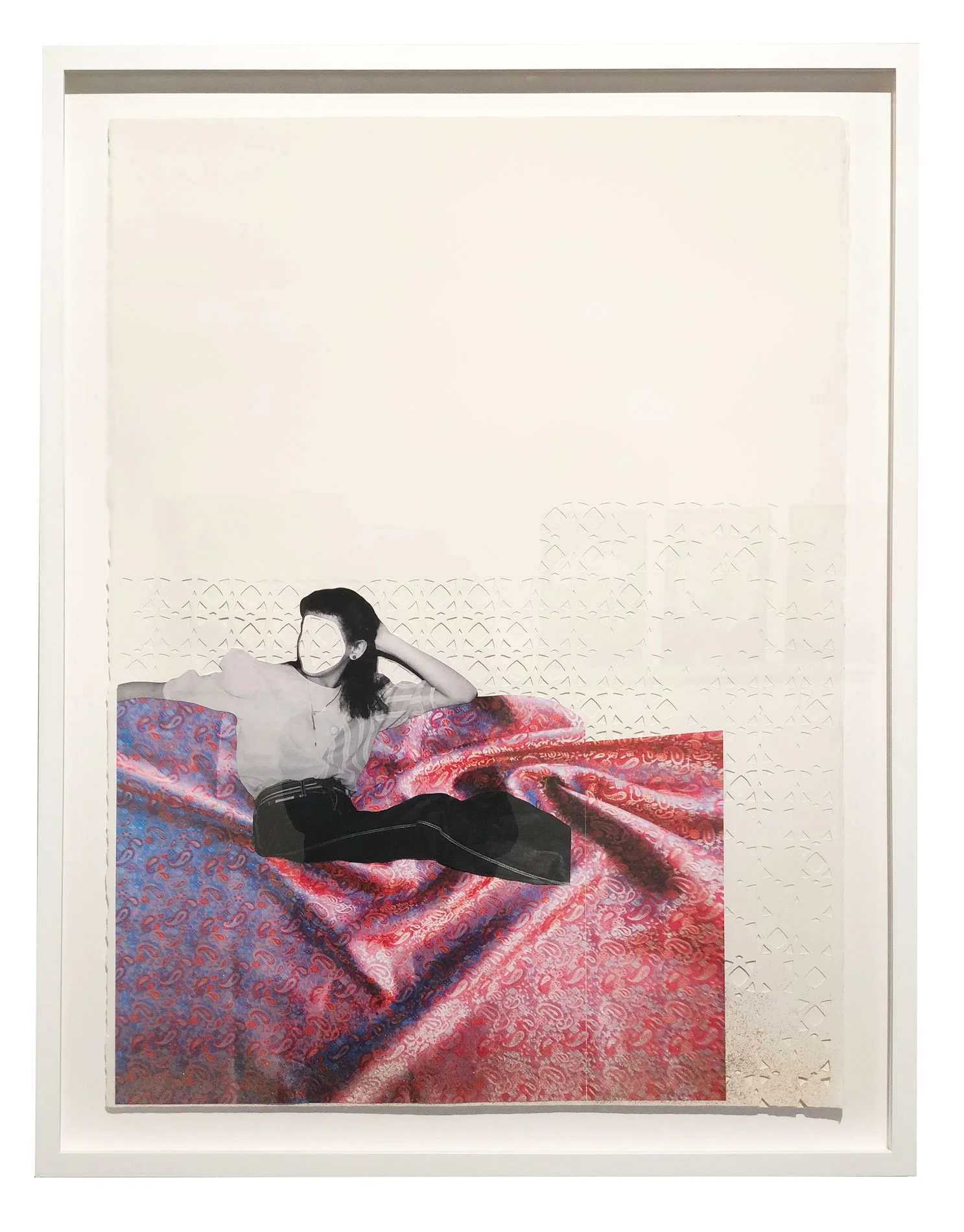 Yasmine Nasser Diaz, "Reclining", 2018, Collage, glitter and graphite on hand-cut watercolor paper, 27.7 x 38 inches